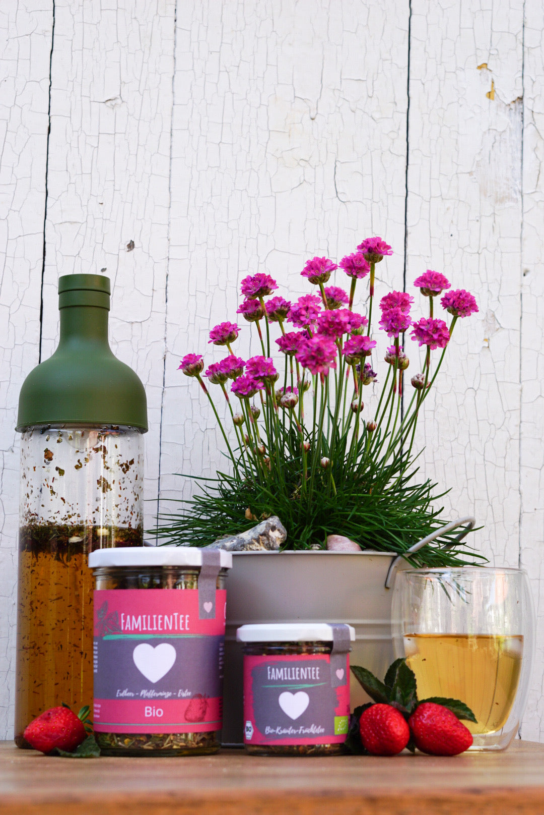 Unser Familientee hat einen fruchtigen Geschmack von Erdbeeren und den frischen Geschmack von Pfefferminze. Dieser Tee ist perfekt für gemütliche Familienmomente zum Entspannen und Genießen. Die harmonische Kombination ist als Heiß- und als Eistee ein Genuss. Für die Zubereitung als Eistee wird 1 EL Tee mit kaltem Wasser vermischt und für mindestens zwei Stunden in den Kühlschrank gestellt. Genießt diesen köstlichen Familientee.