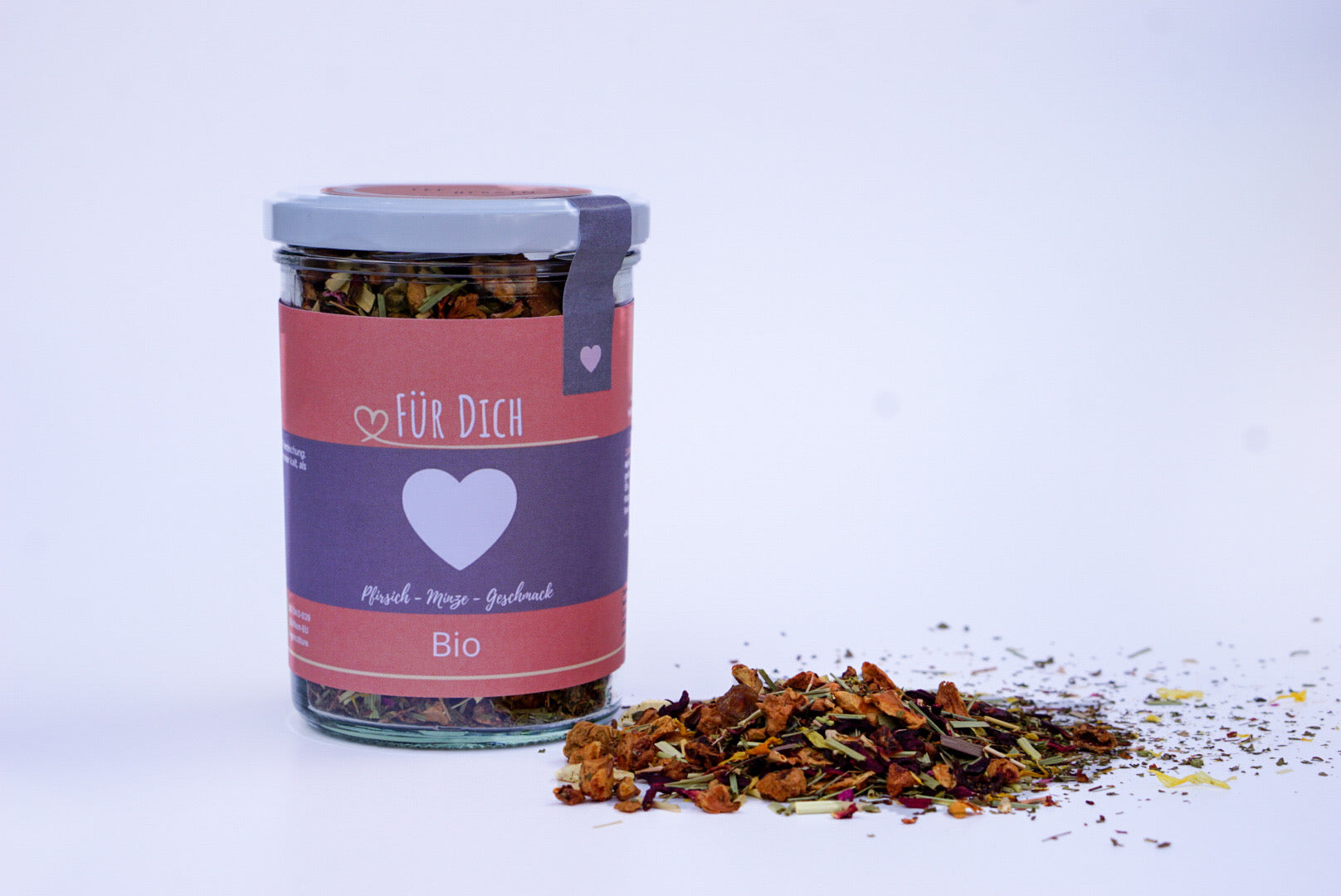 Für Dich ist diese leckere, fein abgestimmte Teemischung. Genieße den Pfirsich - Minze Geschmack, im Sommer kalt, als Eistee und bei Schmuddelwetter schön warm.